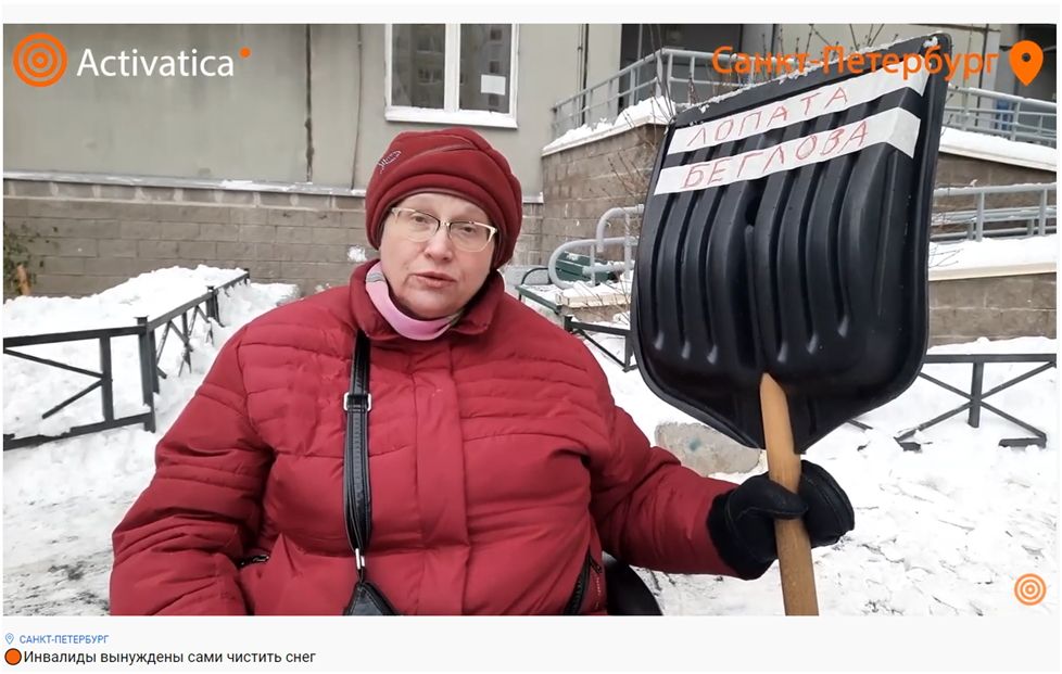 Колясочники с «лопатой Беглова» упрекнули Смольный в плохой уборке улиц от снега